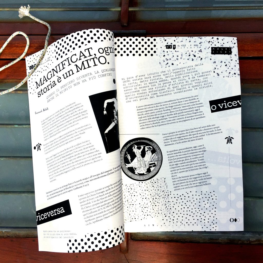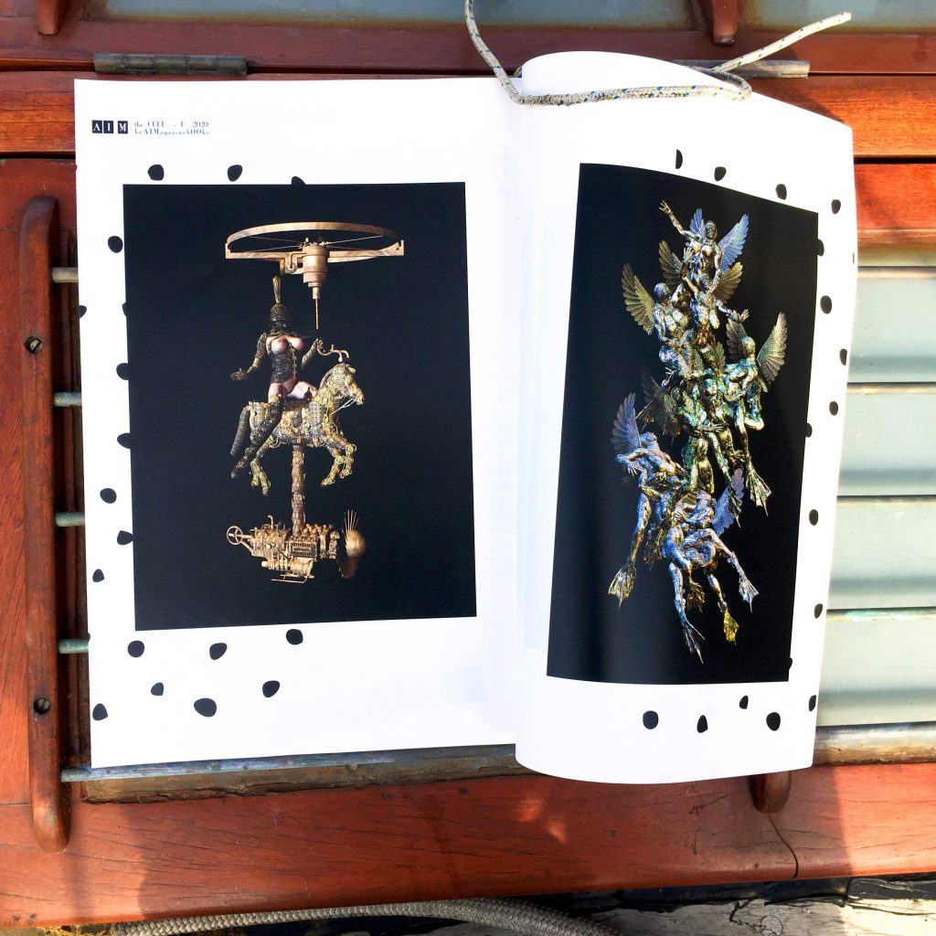 -IL MANIFESTO. Fondato come periodico nel 2007 (L’AperitivoIllustrato Magazine), AIM - The CULT nel 2020, già alla sua seconda uscita sperimentale, si afferma come Book da Collezione, proponendosi in abito da sera, elegante, internazionale, ma sempre con quel tocco diverso, che restituisce quel senso di eccentricità che l’high class internazionale riconosce per forma e contenuti. Rilegatura Watoji, carte super-touch, stampa vellutata, formato da Sogno. Portfolio in stampa fine-art d’autore, racconti brevi inediti che lasciano grandi emozioni, testi critici amanti delle opere d'arte: è questa la ricetta del nuovo AI M - the CULT. Maison editoriale: AIMagazinebOOks.