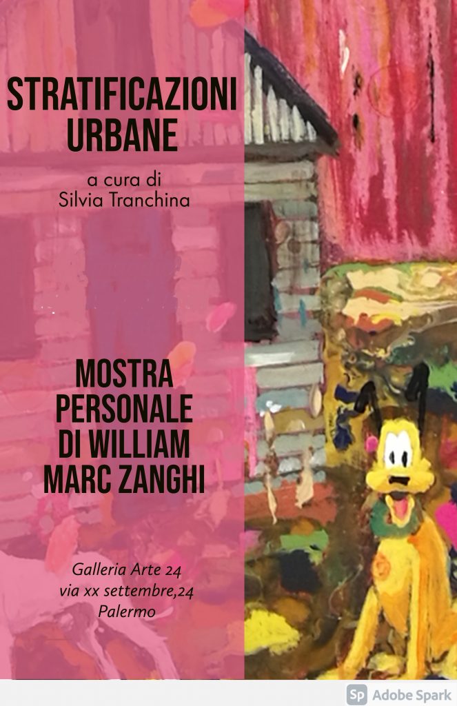 In “Stratificazioni urbane” presso la Galleria Arte24, a cura di Silvia Tranchina, da vernici industriali dai forti contrasti cromatici visivi e concettuali si approda ad opalescenti stratificazioni cartografiche da lui definite mappature.