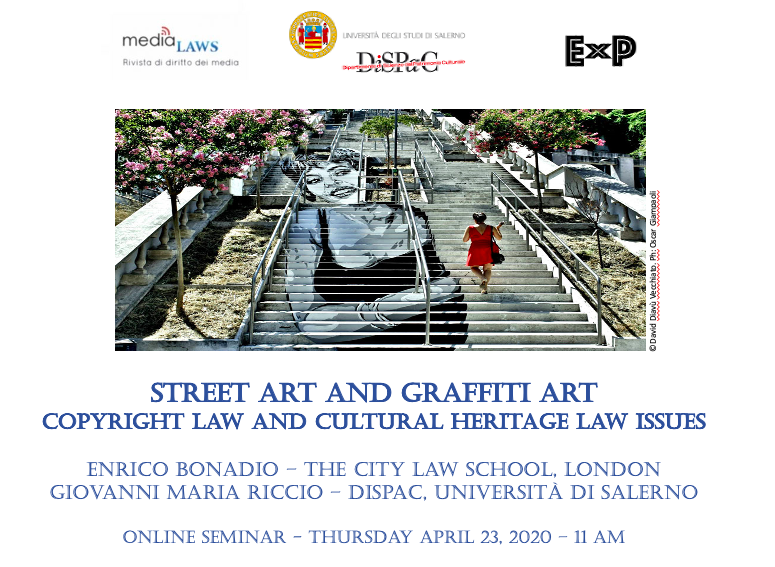 Giovedì 23 aprile, alle 11, si terrà un seminario su “Street art and graffiti art. Copyright law and cultural heritage law issues”, organizzato dalla rivista giuridica Medialaws. Discuteranno di diritto d’autore, patrimonio culturale e conservazione delle opere di arte pubblica Enrico Bonadio, professore di Intellectual Property della City University of London, e Giovanni Maria Riccio, professore di Diritto d’autore e di Legislazione dei beni culturali dell’Università di Salerno. Tutte le informazioni per accedere al seminario sono disponibili al seguente link: http://www.medialaws.eu/street-art-and-graffiti-art-copyright-law-and-cultural-heritage-law-issues-23-april/
