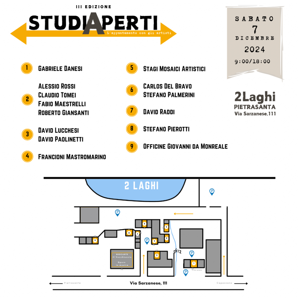 "STUDI APERTI 2Laghi" torna a Pietrasanta il 7 dicembre 2024