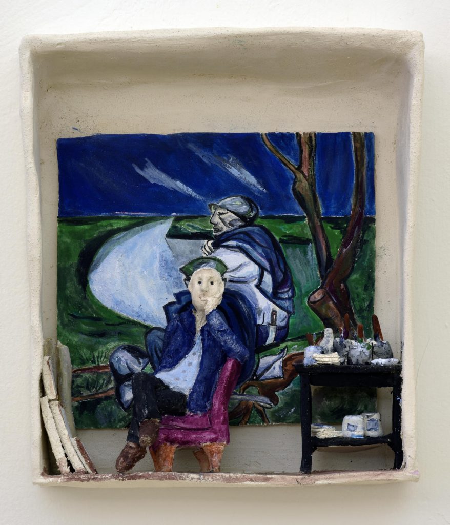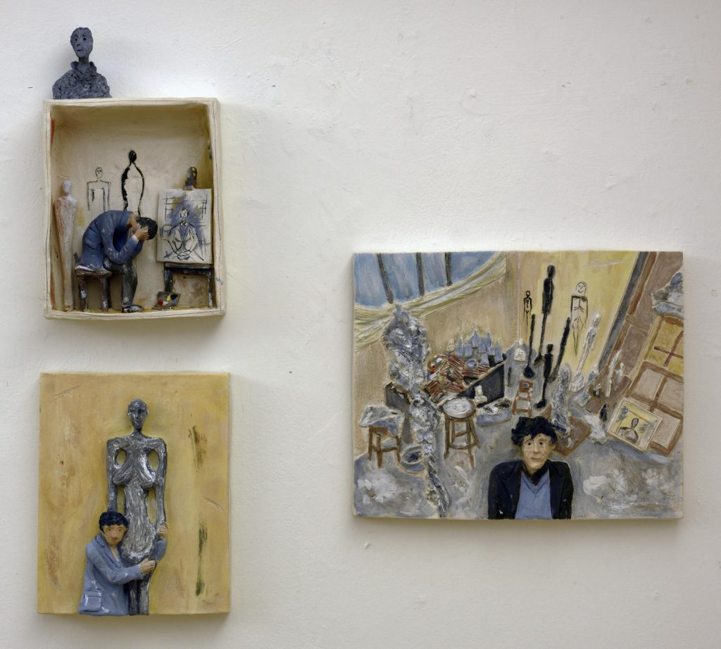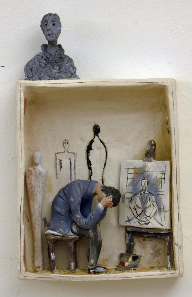 Luogo di rivelazioni e disvelamenti, lo studio dell’artista è senza dubbio uno spazio dove, grazie a uno stato sospeso tra ciò che non è ancora e ciò che sarà, prendono vita le opere d’arte. Oltrepassare le loro soglie richiede il rispetto di chi riconosce di avere ottenuto un gran privilegio e questo Marco Petean lo sa benissimo. In mostra troveremo quindi esposti una selezione di lavori dal ciclo degli ‘Studi d’artista’, tra cui una ventina di inediti che rappresentano gli studi di alcuni artisti della scena Nazionale ed Internazionale. Ma quello di Marco Petean è un racconto che non si ferma ai soli artisti contemporanei conosciuti. Prosegue ispirandosi in una appassionata, quanto precisa ricerca di fotografie, testi, documentari, interviste e letture riguardanti i grandi artisti storici rappresentati nel loro studio. Il racconto di Petean è racchiuso in piccole boxes, definite anche dalla critica “teatrini dell’arte”, ricche di colori e particolari in grado di trascinare lo spettatore in un viaggio coinvolgente nel cuore della storia dell’arte.