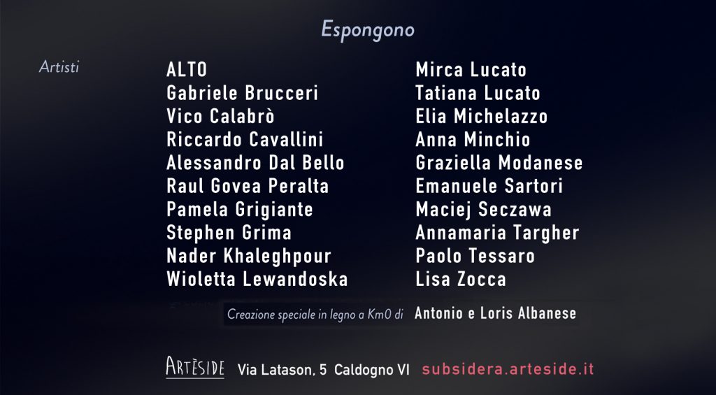 Inaugurerà il 26 maggio alle 19 a Caldogno presso lo spazio Artèside con una vernice che si annuncia pirotecnica la mostra collettiva Subsidera, che ospita venti artisti locali e internazionali. Padrone di casa e organizzatore è Alessandro Dal Bello, coadiuvato da Tatiana Lucato, artisti in mostra anche come ALTO, il nome che coniuga sul filo della doppia identità le loro espressioni diverse ma consonanti e complementari in opere di taglio più tradizionale e installazioni luminose (i Boxsidera). Curatrice è la storica dell’arte Mara Seveglievich.