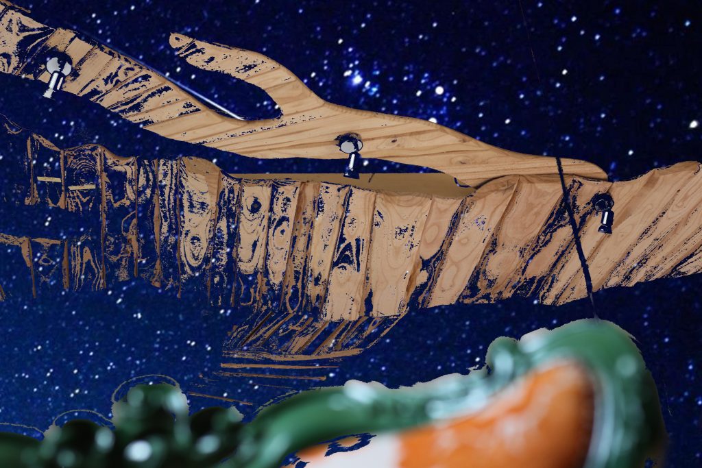 Il grande tema sotteso – ed evidente nel titolo – è quello delle stelle come luminoso “oltre” cui tendere per vincere la morte, aspirazione di artisti di ogni epoca, che ne hanno sottolineato spesso l’ansia di raggiungimento e la malinconia della caduta. Gli artisti in mostra (fra cui il maestro di molti di loro Vico Calabrò, Nader Khaleghpour, Mirca Lucato, Annamaria Targher) lo declinano in termini personali con oli o acrilici su tela, collage, sculture, installazioni che spaziano da poetiche espressioniste o surreali a espressioni fortemente concettuali e modalità decisamente contemporanee.