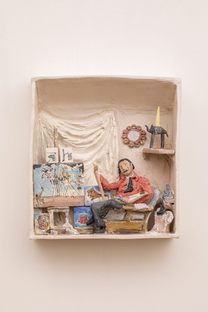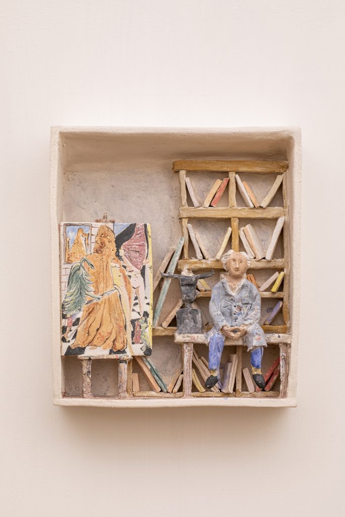 Si crea così un’atmosfera carica di ordine o caos, di tensione o estrema calma, delineando di conseguenza anche la personalità dell’artista ritratto. Lo scultore narra gli artisti narrando se stesso e la sua sensibilità.