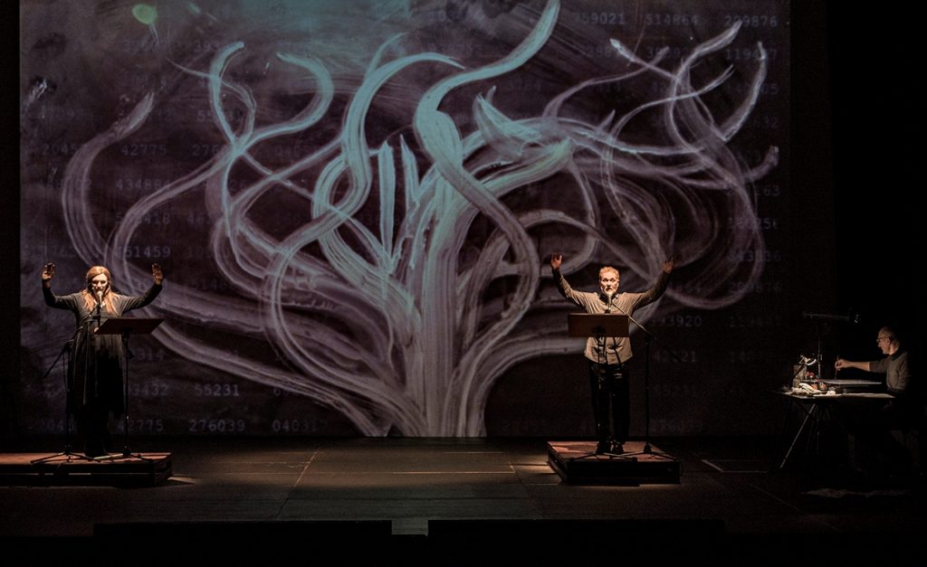 In scena gli stessi Monica Morini e Bernardino Bonzani insieme al compositore e musicista Gaetano Nenna e all’artista visivo Michele Ferri, che interagisce dal vivo con uno schermo di immagini parlanti realizzate ad hoc dal videomaker Alessandro Scillitani.