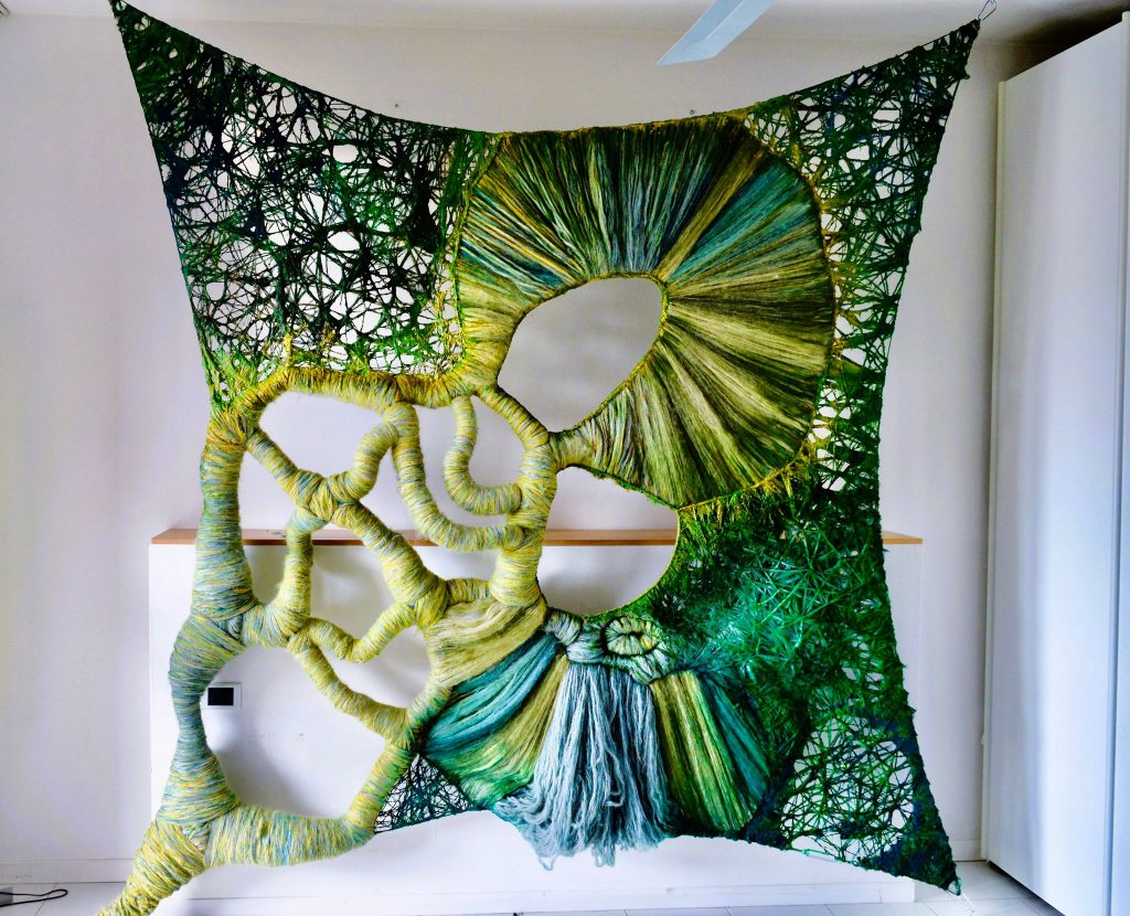 La prima personale di Gloria Campriani, esponente della cosiddetta Fiber art, nelle modalità ed evoluzioni più contemporanee del genere, e che vede del tessile la materia principe di espressione.