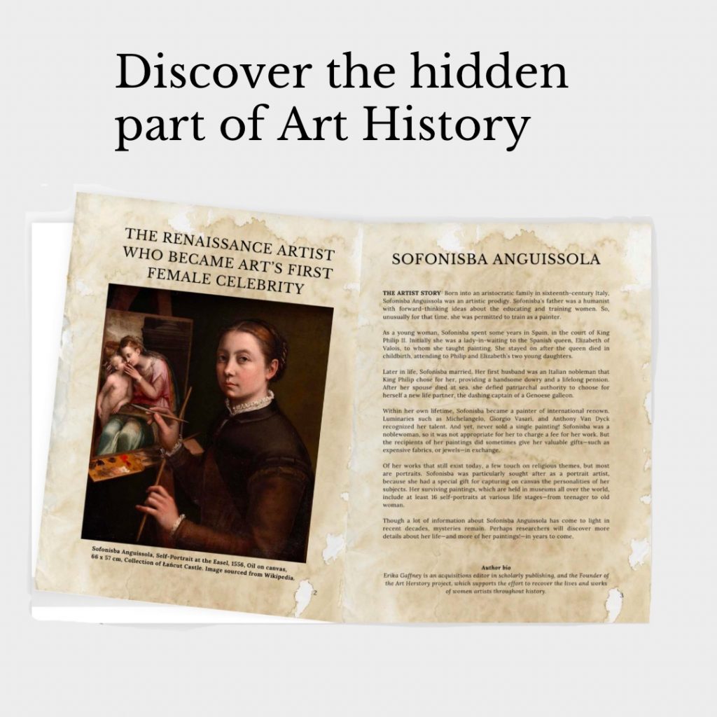• A collaborative feature with Erika Gaffney, founder of ArtHerstory.net, who curated the historic segment of the magazine, celebrating Sofonisba Anguissola, the Renaissance artist who became one of the first renowned women artists in history.