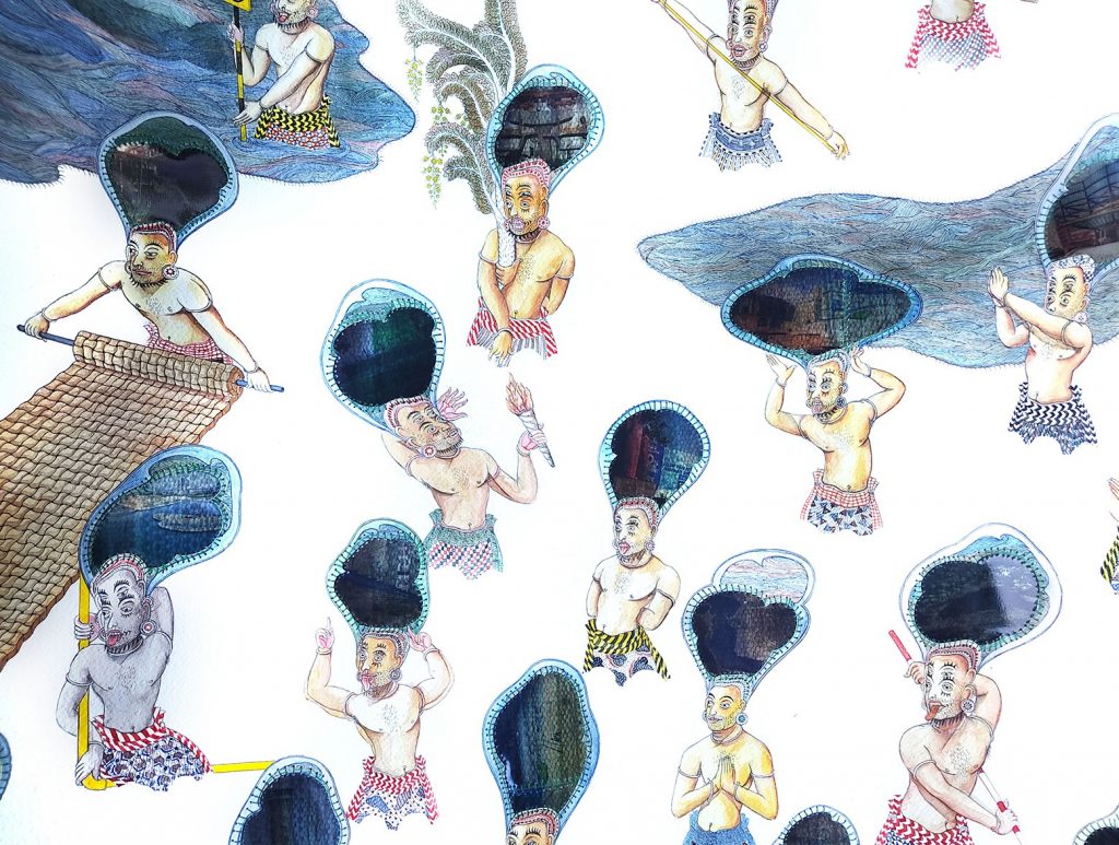 Artista raffinato e engagé, da anni Hettiarachchi osserva e rappresenta le grandi trasformazioni sociali ed urbane causate dalla nuova colonizzazione indiana e cinese dello Sri Lanka. I Visitatori arrivano da un Nord che non rappresenta più (o almeno non solo) gli ex colonizzatori europei o gli Stati Uniti bensì le nuove potenze mondiali quali Cina e India, interessate a sfruttare le risorse naturali e sociali dello Sri Lanka snodo centrale per la Nuova Via della Seta. Con They come from North Kaiya Collective, in collaborazione con Terzo Paesaggio, 5e6 e Fondazione Pianoterra, continua la ricerca sui linguaggi artistici, i territori e gli immaginari esplorati nella costellazione artistica e laboratoriale scaturita dalla produzione del lungometraggio Still Here di Suranga Katugampala.