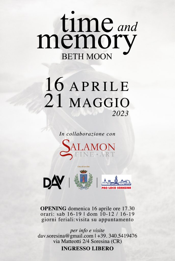 Il DAV - Dipartimento Arti Visive di Soresina (CR) presenta, dal 16 aprile al 21 maggio 2023, Time and memory, mostra personale dedicata alla fotografa americana Beth Moon. L’esposizione, realizzata in collaborazione con la Salamon Fine Art Gallery di Milano, presenterà al pubblico alcuni degli scatti più iconici ed emblematici dell’intera produzione dell’artista.