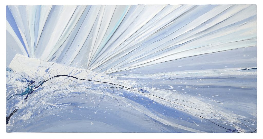 Attraverso opere che oscillano tra l’astrazione e l’informale, Sceverti traduce il mare in emozioni tangibili, in paesaggi eterei e in cromie che danzano al ritmo dei flutti e lo esplora come simbolo di appartenenza, viaggio interiore e magia consolatoria.