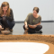 Mentre veniva disegnata da Doblanovic e Barnes, la grande composizione si è espansa in modo regolare e sistematico a partire da un’unica striscia del colore della terra, fino a includere più strisce colorate all’interno di un centro bianco di forma ellittica. Gli ovali concentrici nelle varie sfumature di marrone della terra hanno fatto sì che il centro catalizzasse gli sguardi, raggiungendo un risultato straordinario. A cominciare dalla polvere di marmo rosa, per poi passare all’ocra gialla e all’argilla rossa e arrivare al suolo di superficie nel marrone più profondo, la presenza di infinite ere pedologiche è stata trasmessa dal colore, dalle consistenze e dal ritmo, sospeso tra la materialità del tangibile e l’astratto del vuoto. I tanti recipienti lavorati con delicatezza punteggiavano l’installazione come stelle e pianeti sparsi in un universo infinito, rafforzando la sensazione di trovarsi in un altro mondo. Tuttavia, la semplicità materiale di Tocca la terra si è rivelata più vicina alla nostra vita reale, quotidiana, in un’analisi simultanea della dimensione cosmica e umana, e di come quest’ultima si rapporta alla prima.