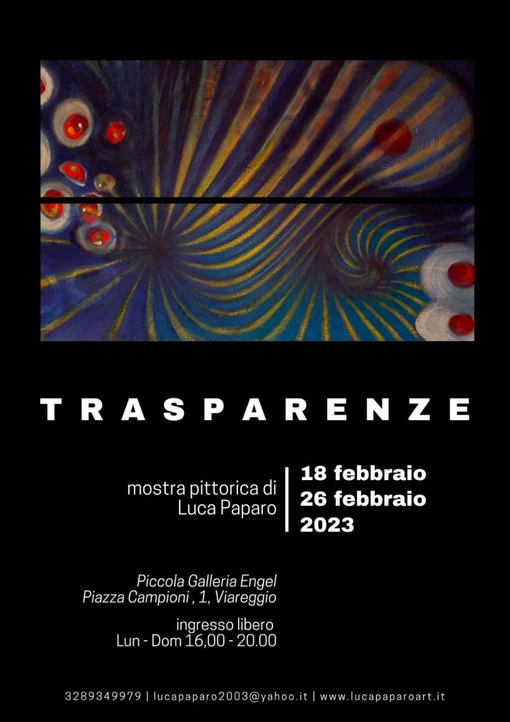 Dal 18 febbraio al 26 febbraio 2023 la Piccola Galleria Engel ospita la mostra del pittore Luca Paparo, viareggino d’azione milanese di nascita, dal titolo Trasparenze