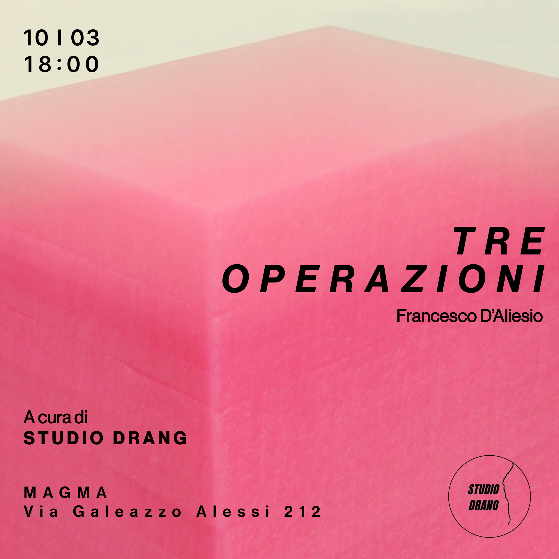 STUDIO DRANG, nuovo spazio di ricerca dedicato alla sperimentazione artistica contemporanea, inaugura la sua stagione espositiva con TRE OPERAZIONI, primo progetto ad essere ospitato nella nascente realtà romana.
