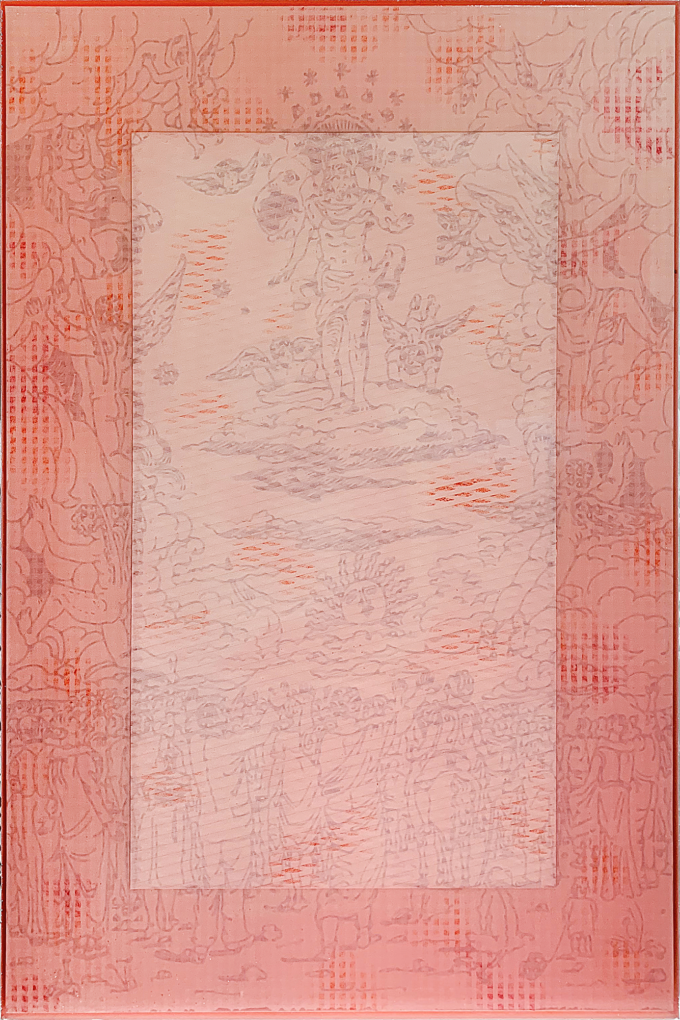 È proprio con lo sconvolgimento che l’opera provoca entrando in punta di piedi nella quotidianità dello spazio, che si compie Una tranquilla Apocalisse, a cui Saglia fa riferimento riportando alla base dei suoi quadri un’antica litografia di Giorgio De Chirico che ritrae un’ ordinata e composta fine del mondo. Allo stesso tempo, la scelta di una simile ’immagine permette all'artista di proporre una riflessione sull'evolversi della tensione socio-politica attuale che, se da una parte prefigura sempre più imminenti scenari catastrofici, dall’altra non sembra avere alcun effetto sulla routine in cui si immerge la nostra società contemporanea.