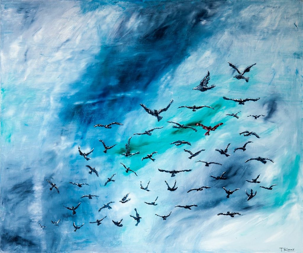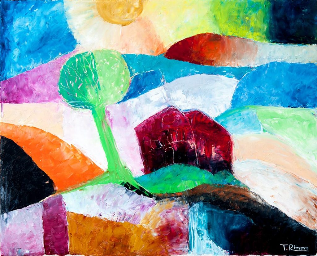 I soggetti dei suoi dipinti non hanno bisogno di descrizione e decodifica, sono impressioni, comunicate sulla tavolozza dei colori, che trasformano il protagonismo caotico in integrità organica.