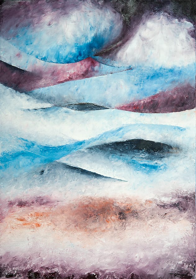 Venti opere totali in mostra, 10 per singolo artista, in colloquio stretto tra loro. Da una parte l’astrattismo di Tsvetelina Rusalieva, che cerca di cogliere l'attimo e l'atmosfera nei ricordi dei suoi numerosi viaggi, creando paesaggi surreali di mondi lontani.