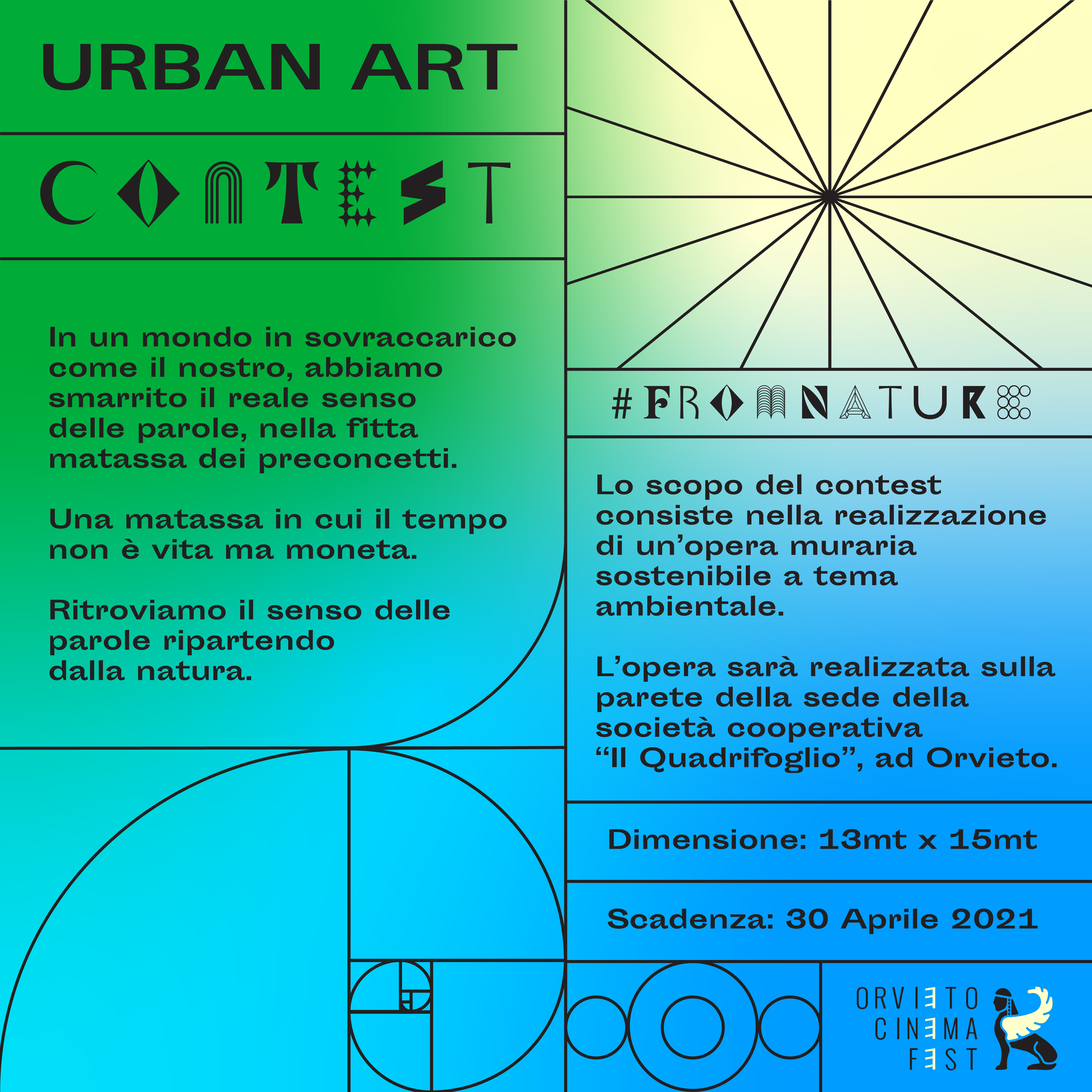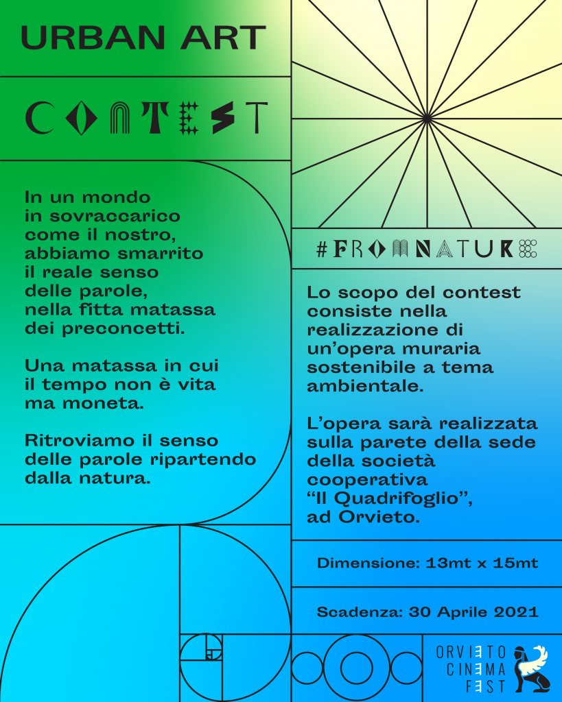 La notizia che vi segnalo riguarda l'apertura delle selezioni da lunedì 22 febbraio fino al 30 aprile 2021 per gli artisti italiani e internazionali che vorranno partecipare al Contest artistico "Urban Art Contest 2021" per la realizzazione di un’opera muraria ad Orvieto. Gli artisti che vorranno prendere parte al progetto dal forte valore simbolico, sono chiamati a realizzare un’opera inedita che abbia come tema centrale la sensibilizzazione ambientale.