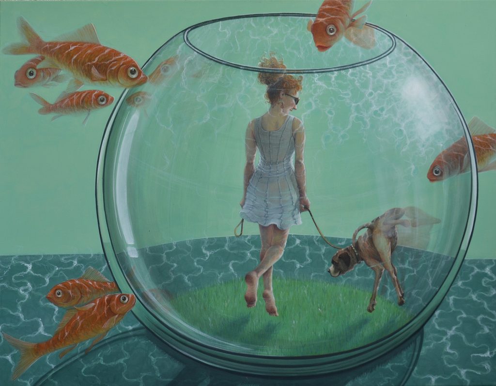 “Fluttuazioni” è un titolo che ben si adatta alla più recente produzione di Vania Elettra Tam, ma in particolare alle opere qui esposte. L’ironia e la seduzione delle sue sceneggiature si sovrappongono ad una velata critica sociale ma dallo sguardo sempre lieve, divertito e surreale. Lo spettatore è invitato a giocare con le unità di tempo, di luogo e di spazio, con la consapevolezza che niente è come sembra… il tutto filtrato attraverso il variegato universo femminile che nell’intera opera di Vania Elettra Tam è protagonista assoluto di un immaginario al tempo stesso reale e irreale, ironico e onirico.