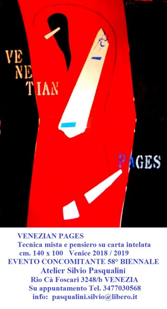 Dal soggiorno veneziano di Silvio Pasqualini scaturiscono queste opere su carta. Le opere raccontano in modalità letteraria e con forte intenzionalità il tema del viaggio inteso come soggiorno. L'utilizzo della carta ne sottolinea la direzione. Una sorta di carteggio letterario ispirato da una visione umanista dell'arte, del mondo che cammina con modalità dimenticate e contrarie a quelle convenzionali.