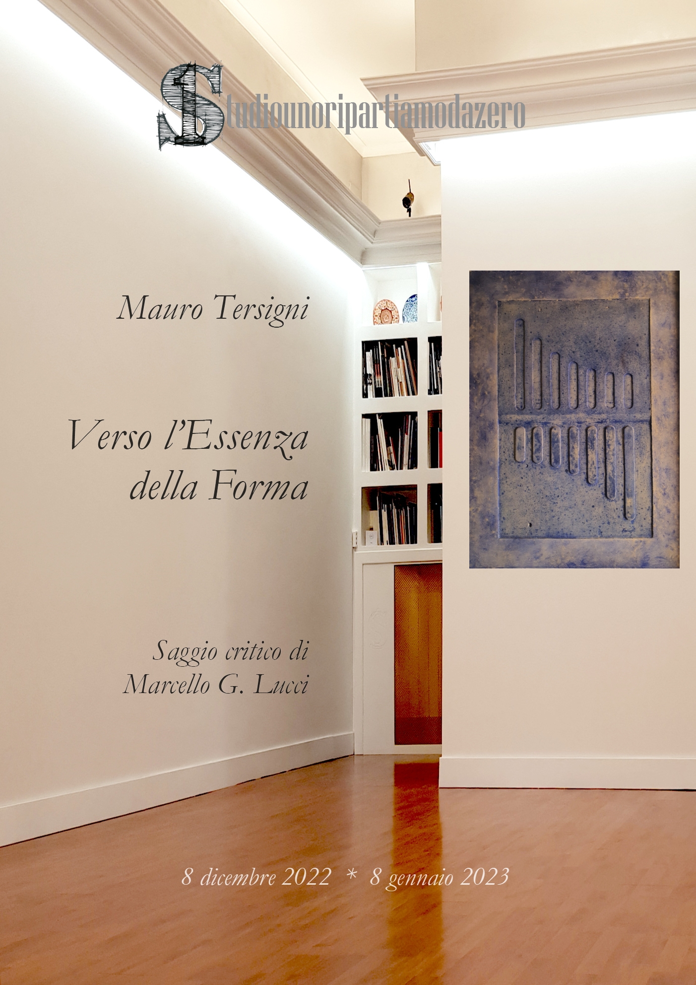 Mostra Personale di Mauro Tersigni, mostra antologica 2022 - 1985. La mostra si svolgerà nello spazio espositivo del Circolo Iniziative Culturali Studiounoripartiamodazero in piazza Castello n. 7 ad Avezzano, per il periodo 8 dicembre 2022 - 8 gennaio 2023. La mostra è a cura di Marcello G. Lucci che ha curato anche il saggio critico presente in catalogo, che verrà distribuito ai presenti all'evento. Il Vernissage è fissato il giorno 8 dicembre 2022 alle ore 17.00.