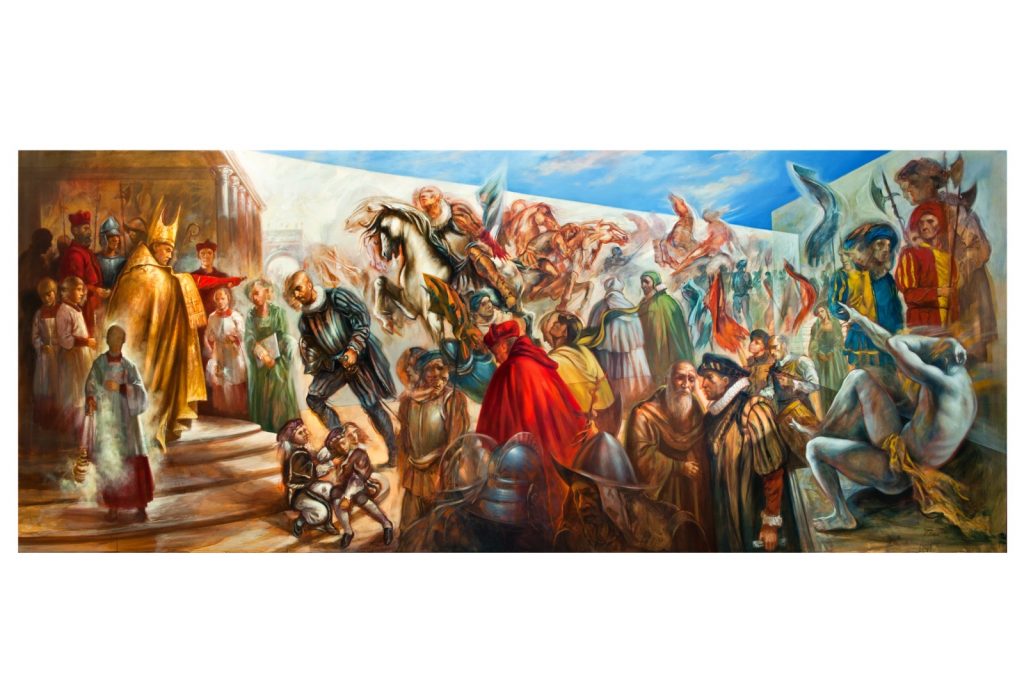 Ciclo pittorico collocato in modo permanente nell’antico palazzo cinquecentesco del Comune di Marino dove i Colonna vissero, oggi sede del Municipio. Il progetto, realizzato dallo scultore e pittore Stefano Piali è iniziato tre anni fa e inserito nei Percorsi per le Competenze Trasversali e l’Orientamento (PCTO)del Liceo Artistico Amari-Mercuri di Ciampino/Marino dove Piali ha insegnato fino al 2023 discipline plastiche e scultoree. Il titolo “Viaggio nella Storia dei Colonna” rivela il nesso della cittadina laziale con alcuni episodi storici strettamente legati ai personaggi più illustri della famiglia Colonna, signori della cittadina laziale nel Cinquecento.