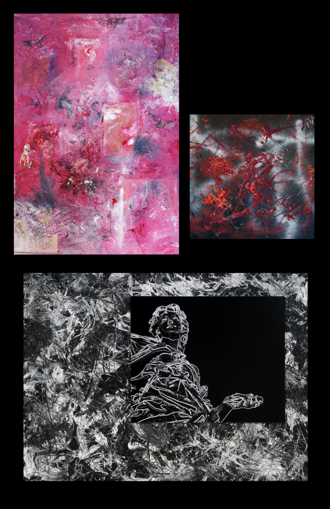 Diverse le tele dipinte con colori acrilici, la sua pittura astratto/informale entra direttamente nel tempo che viviamo, lasciando allo