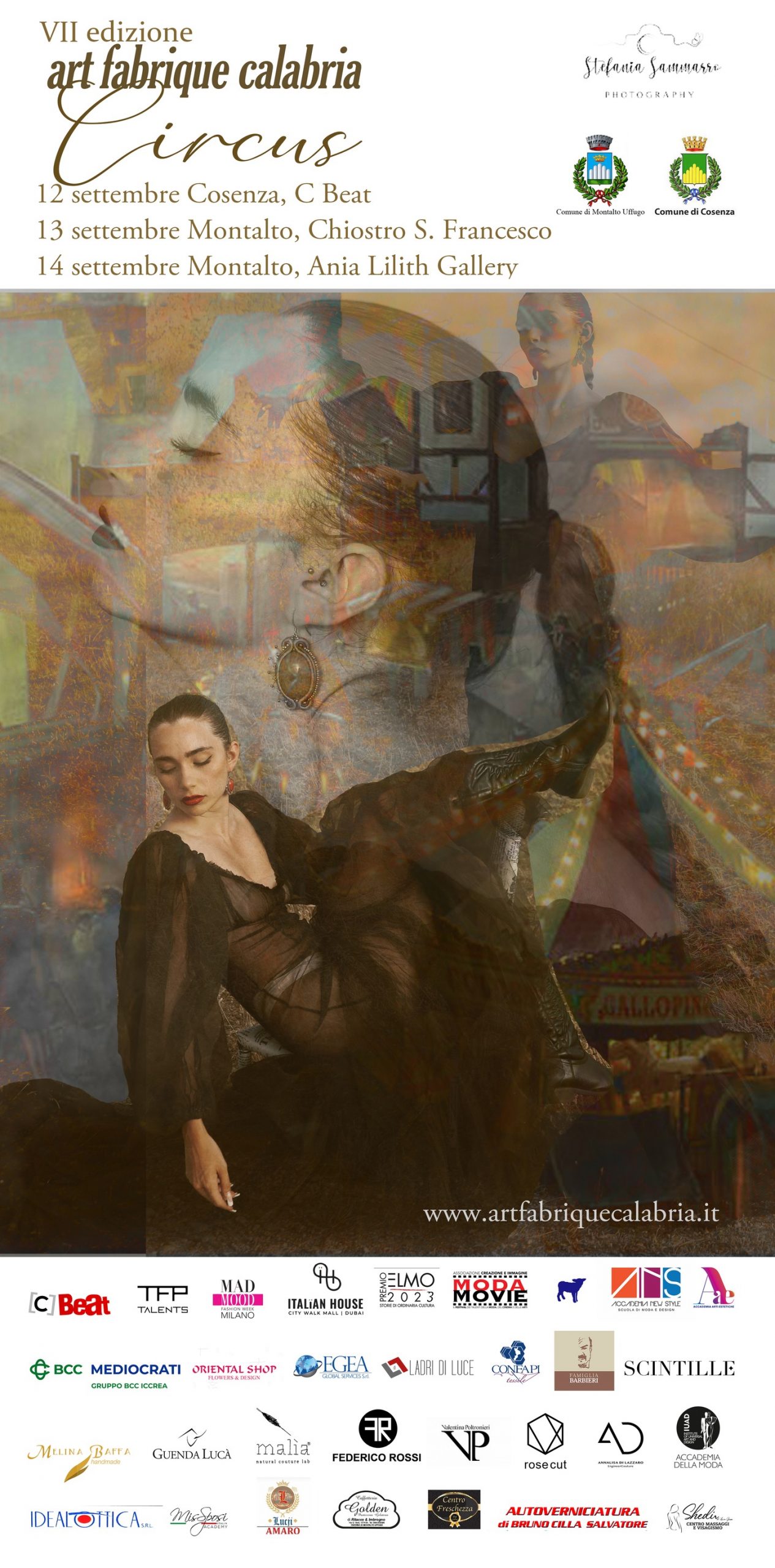 Riflettori puntati sulla settima edizione di Art Fabrique Calabria. Dal 12 al 14 settembre, le porte di questa straordinaria factory dedicata alla moda trasversale e alla fotografia d'arte concettuale si spalancheranno per rivelare un mondo di emozioni e visioni strabilianti. La direzione artistica di Stefania Sammarro, anima pulsante di Ania Lilith Gallery, assicura una kermesse che trascende i confini dell'ordinario. La sua visione e il suo impegno nel promuovere la moda e la fotografia come forme d'arte non convenzionali si riflettono nell'atmosfera avvolgente di Art Fabrique Calabria. Un'occasione irripetibile per appassionati del settore e talentuosi professionisti. Workshop, talk, sfilate e masterclass guideranno gli interessati nell'esplorazione dei processi creativi, svelando i segreti dietro l'incanto di ogni capolavoro. L'arte si fonderà con la moda in un abbraccio avvolgente di contaminazioni e performance spettacolari.