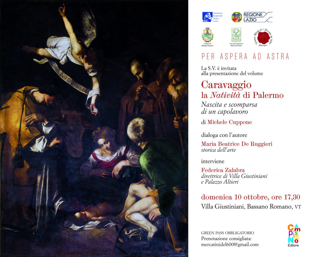 Domenica 10 ottobre alle 17,30, presso Villa Giustiniani a Bassano Romano (Viterbo), museo della Direzione regionale Musei Lazio, in collaborazione con l’Associazione “Comitato Ufficiale per i Mercatini del ’600” si terrà la presentazione del saggio di Michele Cuppone “Caravaggio, la Natività di Palermo. Nascita e scomparsa di un capolavoro” (Campisano Editore, 2021). Dialoga con l’autore la storica dell’arte e studiosa caravaggista Maria Beatrice De Ruggieri, interviene la direttrice di Villa Giustiniani e Palazzo Altieri Federica Zalabra.
