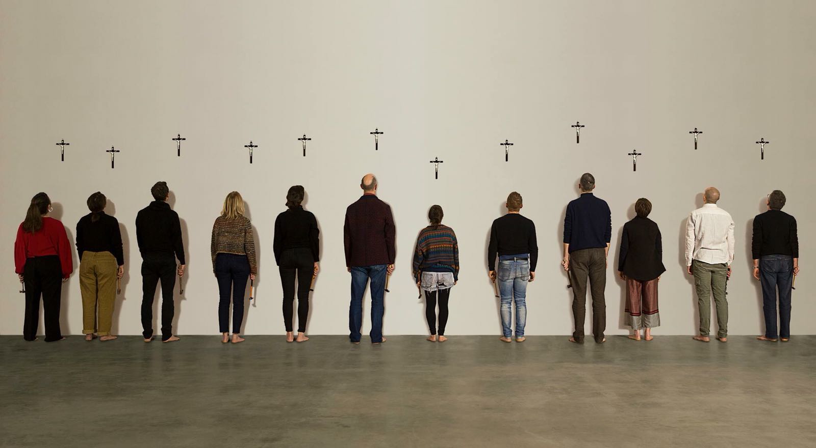 VILLAM è quindi lieta di ospitare negli spazi del Centro Giovani del Municipio I la performance di Filippo Berta “A nostra immagine e somiglianza”, in collaborazione con la Galleria Massimodeluca di Mestre e realizzata in occasione della 6° Biennale di Salonicco. L’artista interpreta un’azione collettiva in cui un gruppo di persone in punta di piedi, cercando di raggiungere il punto più alto concesso dal proprio corpo, è impegnato a fissare al muro dei chiodi su cui vengono appesi dei crocifissi identici. Il lavoro è una riflessione sull’esigenza collettiva di elevare un nostro simile a una condizione predominante e di dominio pubblico. Il risultato diventa un limite invalicabile, irregolare e soggettivo verso un’ipotetica perfezione che ogni essere umano tenta inutilmente di raggiungere. Forse perchè l’essere umano è il confine posto tra l’ordine del sovrumano e il disordine del corpo.