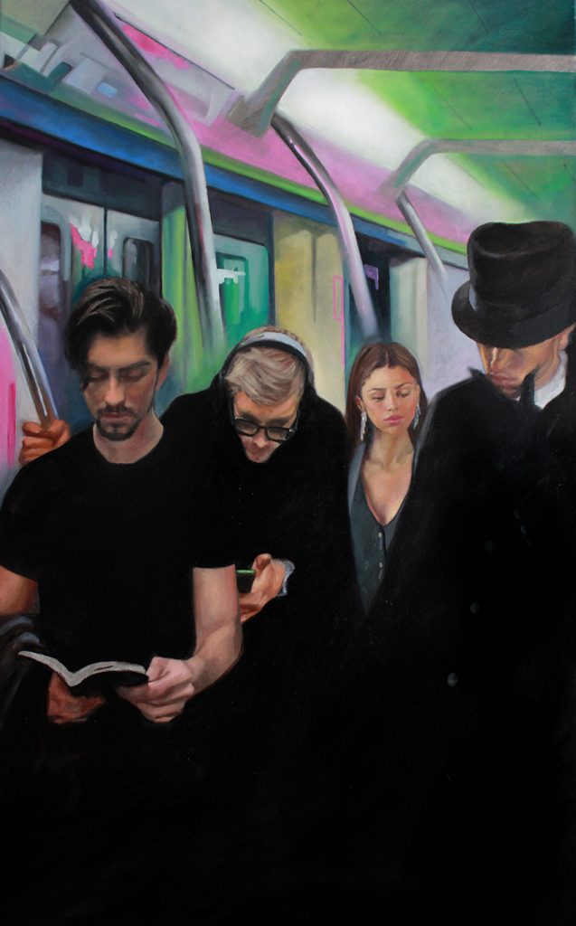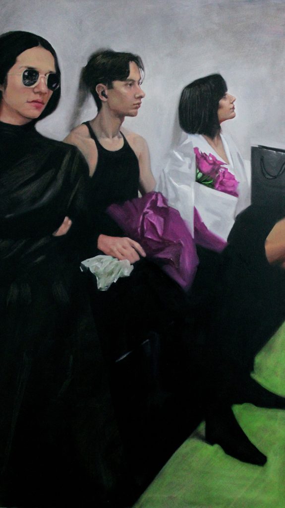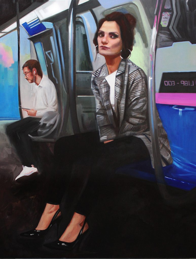 Nelle diciannove opere in esposizione la Vocale entra in empatia con luoghi, odori e suoni, ritraendo persone nelle situazioni più comuni e intime. “Mi affascina il concetto di relatività di gente falsamente ferma, dentro macchine in movimento, spiega l’autrice. Mi piace dare materia ai momenti di attesa concedendo ad essi una dignità per far sì che non siano sprecati”.