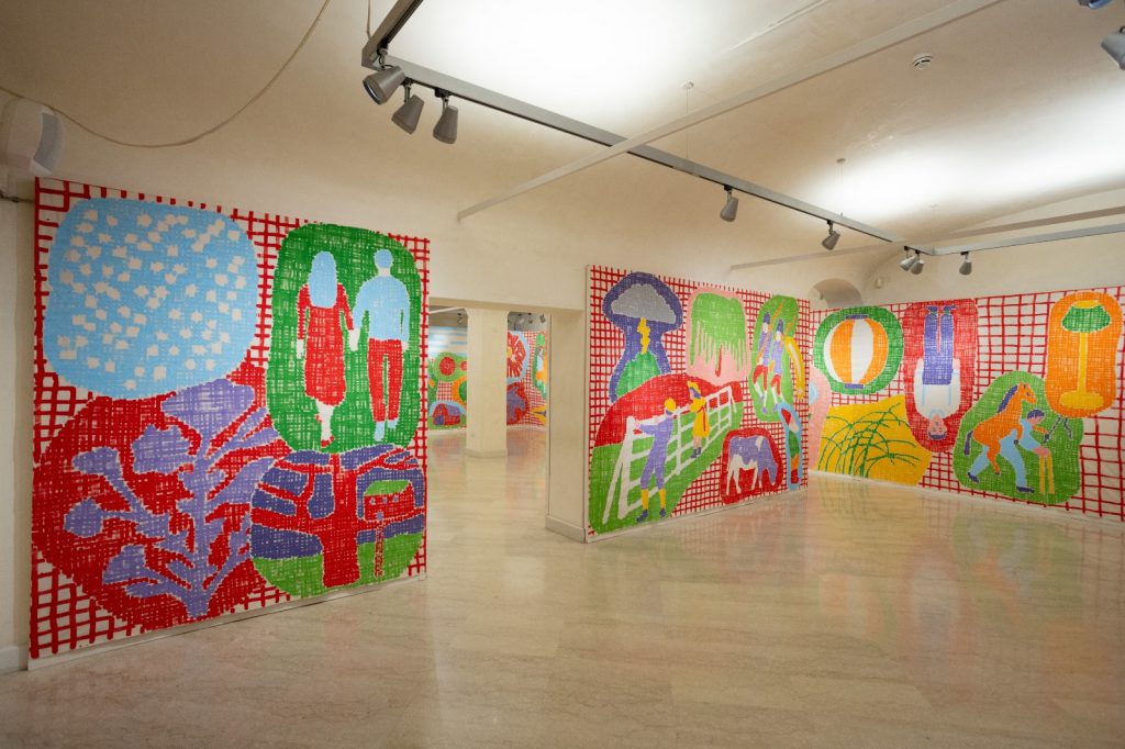 Paul Cox, uno dei più importanti e poliedrici artisti del disegno e della grafica internazionale, arriva a Bologna con 'Wallbook', un’installazione site specific realizzata per la Fondazione del Monte di Bologna e Ravenna che trasforma le sale di Palazzo Paltroni in una grande narrazione da leggere sulle pareti. L'opera - realizzata nell'ambito della Bologna Children's Book Fair e di BOOM! Crescere nei libri 2025 - è un enorme dipinto continuo, lungo 75 metri, che ricopre tutto lo spazio, come fosse l’affresco di una chiesa medievale. L’artista francese - nato a Parigi nel 1959 da genitori musicisti di origine belga e olandese - materializza questo universo di personaggi, azioni, oggetti, trasformandolo in uno spazio fisico che a sua volta modifica lo spazio che lo ospita. E fra le trame delle grandi immagini fanno capolino omaggi alle passioni e agli artisti preferiti di Cox: Töpffer, Hokusai, Brueghel, Chardin, i Lubok e le immagini popolari. Un lavoro di creazione lungo e minuzioso: per quattro mesi l’artista ha dipinto grandi tele da scenografia nel suo atelier in Borgogna ripensando le pareti di Palazzo Paltroni come una partitura musicale per frammenti continui, ravvivata dai colori saturi e sgargianti tipici della palette di Cox e dalle sue pennellate, che costruiscono trame e intrecci. Passeggiando per le stanze della mostra sarà possibile immergersi in un universo cromatico straordinario, in cui si intrecciano trame grafiche, storie e figure. Sulle pareti della Fondazione si incontrano tanti personaggi che appartengono sia all’immaginario collettivo che a quello dell’artista, dando vita, come suggerisce il titolo, a un libro in forma di parete. La mostra, a ingresso gratuito, inaugurata il primo aprile, sarà aperta fino all'11 maggio.