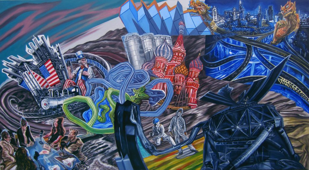 La pittura di Walter Bortolossi non si accontenta di sé stessa ma si impegna a rappresentare un mondo e un’epoca intera, stirandoli e sfigurandoli nell’incrocio tra passato e futuro, come nel riflesso di uno specchio deformante che consegna i fatti ad uno stato di possibilità indeterminata dal quale ognuno potrà trarre poi la sua personale considerazione.