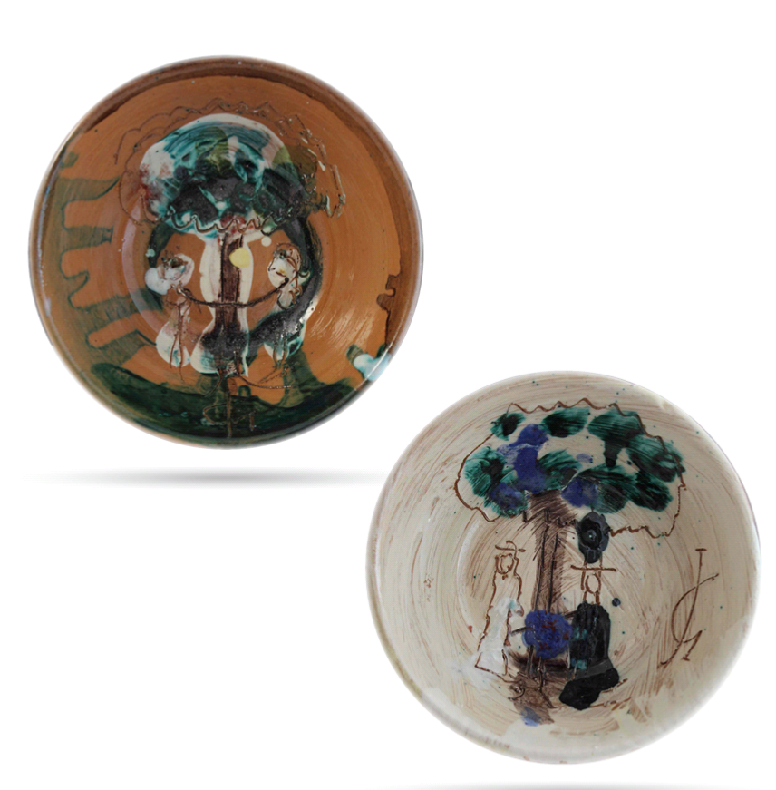 Si tratta di terrine decorate con incisioni, smalti e ossidi che raffigurano un uomo e una donna, quali potrebbero essere Adamo ed Eva. Essa è una serie di opere destinate ad un fortunato committente, il quale, tuttavia, non è riuscito a distribuire, essendo rimaste per quaranta anni chiuse in una scatola. Che Antonio ci abbia messo lo zampino?